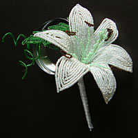 「ユリのブーケ」 先日、知人のためにブーケを制作させて頂きました。 ビーズフラワー自体初めて目にする方が多い為に、かなり評判がよかったそうです。 作者として作った甲斐がありました。 |