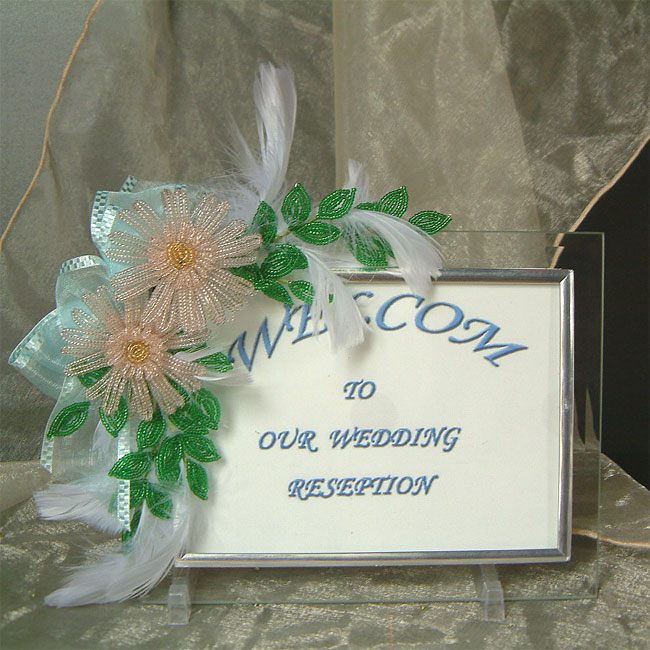 これを2箇所ぐらいつけてその上にビーズフラワーを乗せてフックの所をギュウ〜っと曲げてやると(簡単に曲がります)完了です!裏についている粘着テープも結構強力なので、使わない手は無いかも?