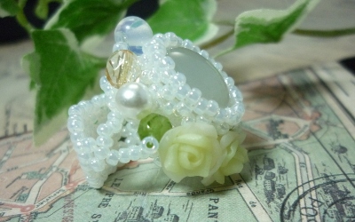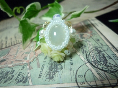 むか〜しむかしそのむかし(と言ってもこれ作ったのは2年前ぐらい・・・) デコレーションリングをはまって作っておりました・・・ この頃はまだバラパーツ作るのにフィモ使ってましたがこの後の作品ぐらいからは 樹脂粘土に変えたんですよね・・・フィモで作るとどうしても厚みが出て 納得いかなかったもんで(焼き過ぎて焦がす事もあったし・・・) ブルーカルセドニー・・・もう少し発色してるの使いたかったんですが これはこれで上品で好きです。 ショップはこちらから→